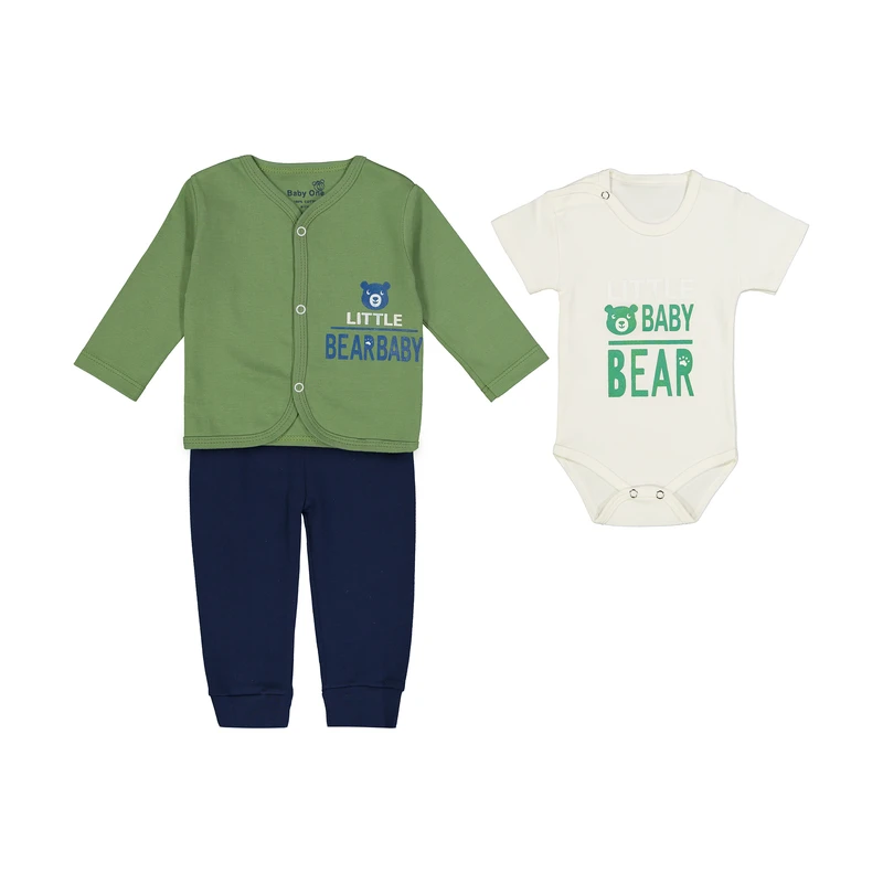 ست سه تکه نوزادی بیبی وان مدل خرس سبز | بادی، بلوز و شلوار نخی سایز ۳ تا ۱۸ ماه۶۵۰٬۰۰۰ 10%