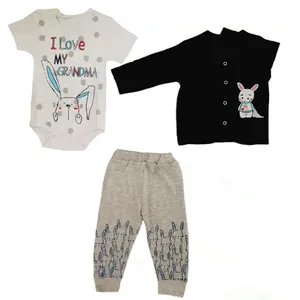 سه تیکه نوزادی برند بیبی وان طرح خرگوش جنس نخ پنبه نرم سایز نوزادی تا 18 ماه شامل بادی شلوار و بلوز جلو دکمه۶۵۰٬۰۰۰ 9%