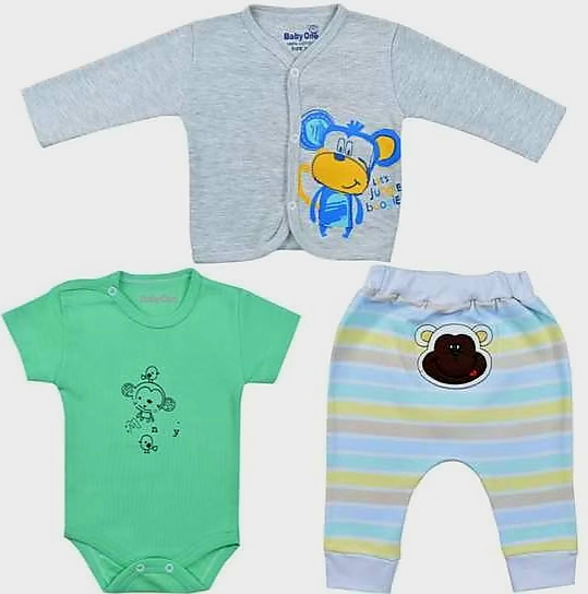 سه تیکه نوزادی برند بیبی وان طرح میمون جنس نخ پنبه نرم سایز نوزادی تا 18 ماه شامل بادی شلوار و بلوز جلو دکمه۶۵۰٬۰۰۰ 10%