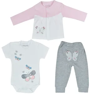 سه تیکه نوزادی برند بیبی وان طرح پروانه صورتی جنس نخ پنبه نرم سایز نوزادی تا 18 ماه شامل بادی شلوار و بلوز جلو دکمه۶۵۰٬۰۰۰ 9%