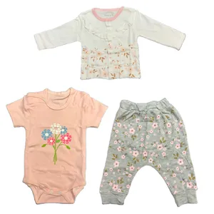 سه تیکه نوزادی برند بیبی وان طرح گل قرمز جنس نخ پنبه نرم سایز نوزادی تا 18 ماه شامل بادی شلوار و بلوز جلو دکمهناموجود
