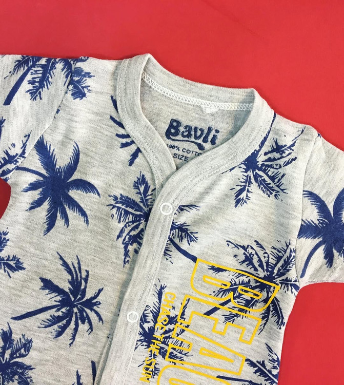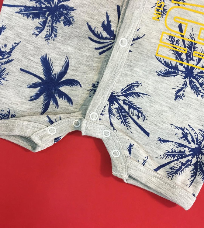 طرح نخل یا هاوایی، ظاهری رنگارنگ و تابستانی به کودک میبخشد. دوخت بادوام و دکمههای کاربردی نیز تعویض لباس را برای والدین آسان میکند.